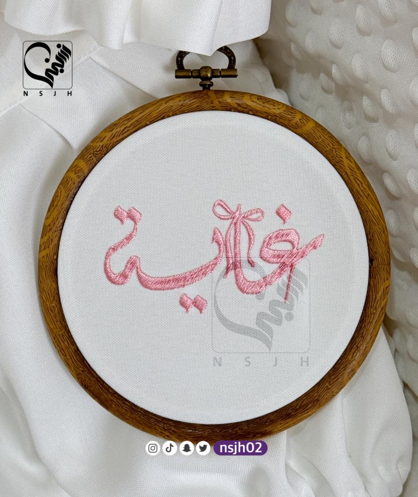 - تطريز اطار يحمل اسم طفلك بخط منمق وجميل بألوان زاهية ومبهجة.